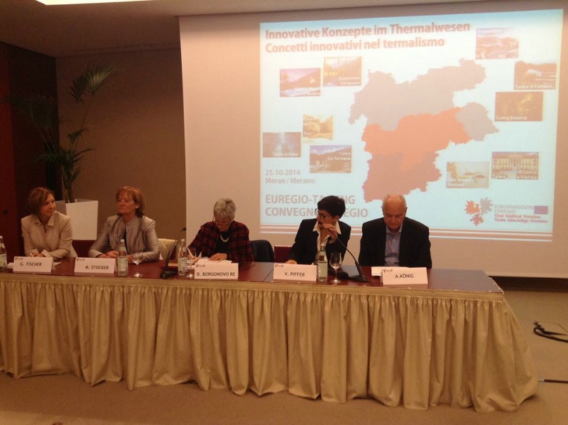 Die Thermalbäder in den drei Landesteilen aufwerten, vernetzen und in die Zukunft führen - das hat sich die Europaregion Tirol-Südtirol-Trentino zum Ziel gesetzt. Innovative Konzepte im Thermalwesen wurden am Samstag in Meran im Rahmen einer Euregio-Fachtagung rund 80 Teilnehmenden vorgestellt. Eröffnet wurde die Tagung durch die Gesundheitslandesrätinnen Martha Stocker und Donata Borgonovo Re.