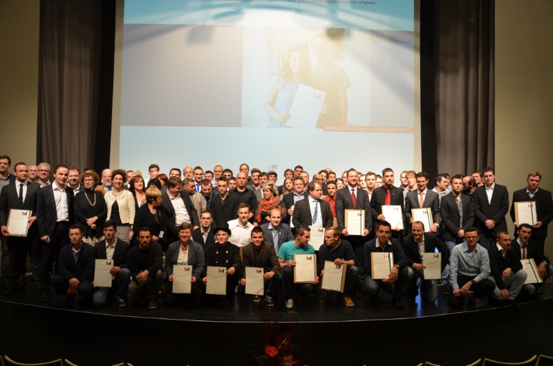 Etwa 440 Teilnehmer wurden im vergangenen Jahr bei den verschiedenen Kursen zur Vorbereitung auf die Meisterprüfung gezählt, 84 von ihnen haben alle notwendigen Prüfungen abgeschlossen und nun auch den begehrten Meisterbrief in Händen. An der Eurac in Bozen fand gestern Abend die alljährlich vom Landesamt für Lehrlingswesen und Meisterausbildung organisierte Meisterfeier statt, und zwar im Beisein von Landesrat Achammer, der den frischgebackenen Meistern zu ihrem Berufserfolg gratulieren konnte.