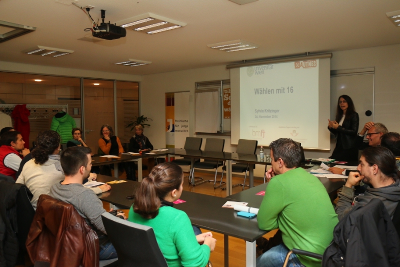 Die Professorin am Fakultätszentrum für Methoden der Sozialwissenschaften der Universität Wien, Sylvia Kritzinger, ist Leiterin der akademischen Wahlstudie AUTNES, die das Wahlverhalten wissenschaftlich untersucht hat. In anschaulicher Weise präsentierte Kritzinger die Ergebnisse der Studie über das Wahlverhalten der 16 bis 17-Jährigen Erstwähler nach der Wahlalterabsenkung in Österreich im Jahr 2008. Interessant das Ergebnis: Die Wahlbeteiligung der 16-Jährigen Erstwähler lag etwas höher als jene der 18 bis 21-Jährigen. "Die Bemühungen Erstwähler durch unterschiedliche Maßnahmen im Bereich der politischen Bildung und durch gezielte Information zu erreichen waren erfolgreich", erklärte Kritzinger den Anwesenden am Dialogabend, zu dem das Landesamt für Jugendarbeit, der Südtiroler Jugendring und der Landesjugendbeirat für die deutsche Sprachgruppe eingeladen hatte.