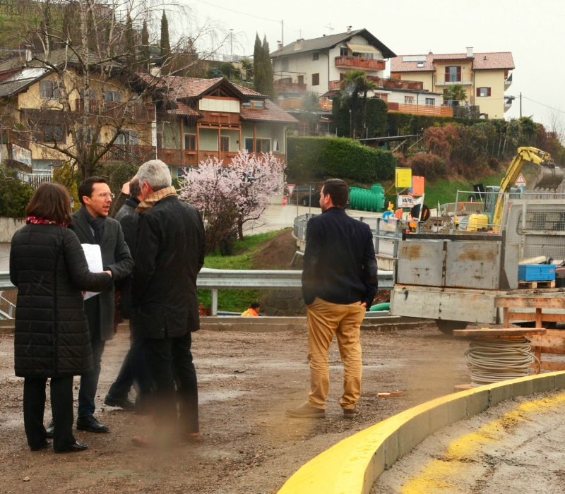 Wie sich Landesrat Christian Tommasini selbst überzeugen konnte, schreiten die Arbeiten am Kreisverkehr in Kaltern zügig voran. Foto: LPA/A.Mair