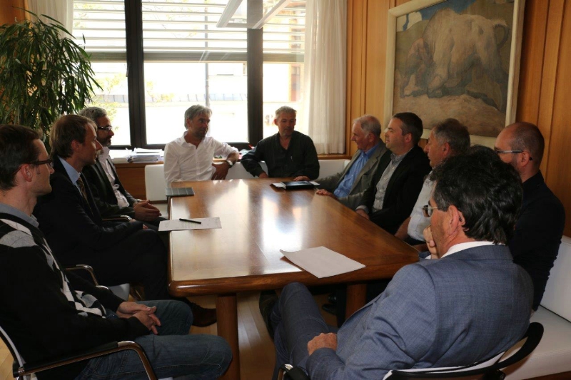 Landesrat Arnold Schuler, Ressortdirektor Klaus Unterweger, Forst-Abteilungsdirektor Paul Profanter, der geschäftsführende Direktor des Amtes für Jagd und Fischerei Andreas Agreiter und der Direktor des Versuchszentrums Laimburg Michael Oberhuber besprachen mit Fischereiverbands-Obmann Meinhard Mayr, seinem Stellvertreter Rudi Messner, Kassier Andreas Untergassmair und den Vorstandsmitgliedern Arwend Corazza und Anton Zingerle Anliegen und Probleme wie die Aufteilung des Energiefonds und wissenschaftliche Belange, etwa in der Fischzucht.