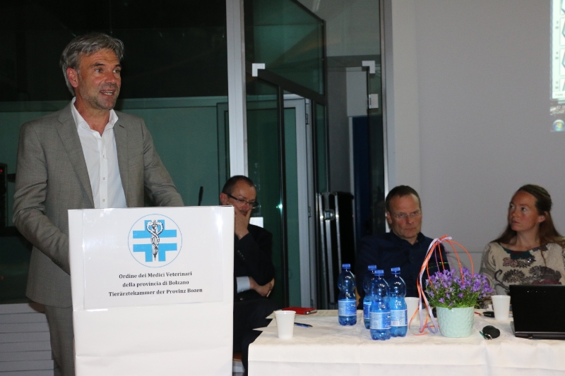 Bei ihrer Jahresversammlung am Sitz des Landestierärztlichen Dienstes am südlichen Stadtrand von Bozen besprachen die Veterinärmediziner gestern (5. Mai) Abend Themen wie Katzenkastration und Erstellung von Richtpreisen, Arzneimitteleinsatz und Tierschutz. Landesrat Schuler ging auf die verstärkte Zusammenarbeit auf wissenschaftlicher Ebene und auf die Einführung des Hoftierarztes ein.