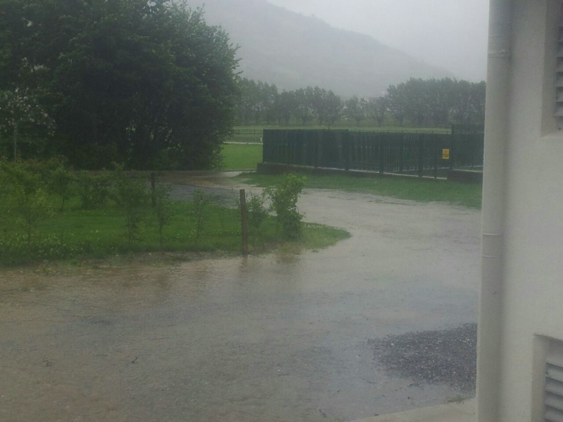 Muntatschinigbach und Platzuterwaldbach treten über die Ufer