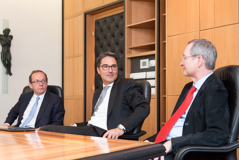 Die Entwicklung der Wirtschaft dies- und jenseits des Brenners standen naturgemäß im Zentrum des Zusammentreffens von Landeshauptmann und Wirtschaftslandesrat Kompatscher mit Wirtschaftskammer-Präsident Leitl. Kompatscher erklärte, dass Südtirol sechs Jahre der Krise hinter sich habe und vor allem die Bauwirtschaft diese Krise zu  spüren bekommen habe. Nun gebe es jedoch Signale des Aufschwungs, sagte Kompatscher: „Die Zahl der Beschäftigten steigt erstmals wieder deutlicher an und erstmals seit Langem war die Zahl der Arbeitslosen im April rückläufig.“ Der Landeshauptmann verwies auch auf ein weiteres positives Signal: die steigenden Exporte: „Die Südtiroler Betriebe haben noch nie dagewesene Exportraten erzielt und das, obwohl sie in einem sehr schwierigen nationalen und auch sehr durchwachsenen europäischen Kontext operieren mussten.“ Kompatscher erklärte, dass die Südtiroler Landesregierung auf Entlastungen setze, weil die Senkung des Steuerdruckes die unbürokratischste Form der Unterstützung sei. Der Landeshauptmann verwies darauf, dass die Landesregierung auch dabei sei, das Beitragssystem in der Wirtschaftsförderung umzubauen, um vor allem die Zielgenauigkeit der Förderungen zu erhöhen.