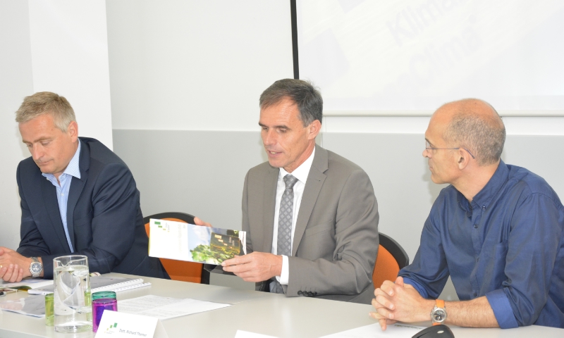 Sie stellten heute den Geschäftsbericht 2014 der KlimaHaus-Agentur vor (v.l.): Ulrich Santa, LR Theiner und Stefano Fattor./Foto LPA rm
