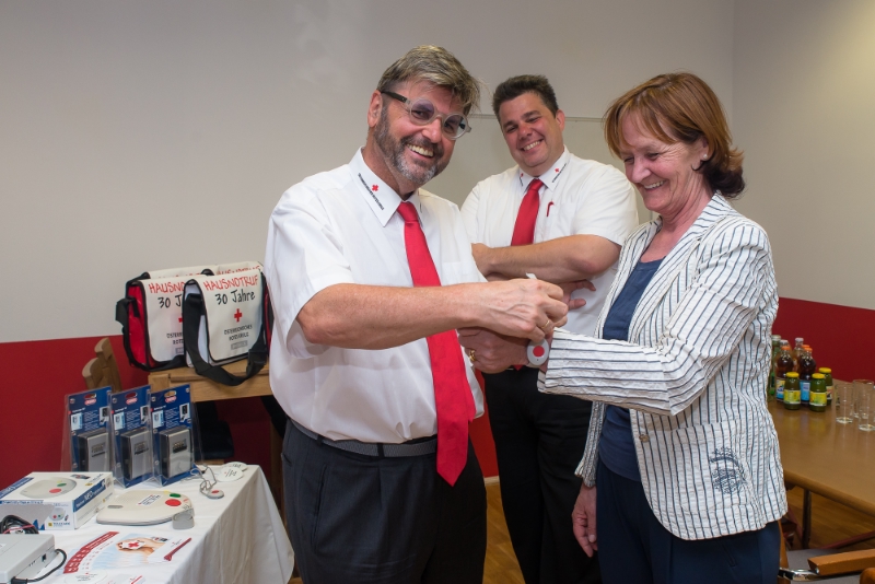 Bei einem Besuch in der Hausnotrufzentrale in Innsbruck erhielt Landesrätin Stocker vom Obmann der Freiwilligen Rettung Innsbruck des Roten Kreuzes Max Langer und Geschäftsführer Hannes Ellmerer Informationen über die schnelle und unbürokratische Hilfe, die in erster Linie von Senioren und pflegebedürftigen Menschen auf Knopfdruck angefordert werden kann. Den rund 4700 Kunden des Hausnotrufdienstes mit einem Durchschnittsalter von 82 Jahren stehen elf Mitarbeiter der Disposition und vier Techniker rund um die Uhr zur Seite und werden jährlich zu etwa 50.000 Einsätzen gerufen. Dabei gibt es für die Nutzer dieses Angebotes maßgeschneiderte Angebote vom stationären Hausnotruf und Notrufsender über einen Mobilnotruf bis hin zu einer Armbanduhr mit Notrufsender. "Auch in Südtirol gibt es immer mehr Menschen, die mit Unterstützung in ihren eigenen vier Wänden leben und für deren pflegende Angehörige ein solches Angebot durchaus eine Hilfe sein kann. Unser Hausnotruf im Weißen Kreuz bietet bereits seit Jahren diese wertvolle Dienstleistung, es war interessant die Ähnlichkeiten der Dienste in den beiden Nachbarländern festzustellen", sagte Landesrätin Stocker anlässlich ihres Informationsbesuches in Innsbruck. Eine schnelle Hilfeleistung im Notfall und die Möglichkeit sich unmittelbar mit einer Fachkraft auszutauschen biete die Chance, vor allem in der Pflege und Betreuung zu Hause den betroffenen Familien eine zusätzliche Sicherheit zu geben, so Stocker.