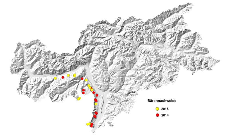Grenzgänger: Nachweise von Bären in Südtirol in diesem und im vergangenen Jahr.