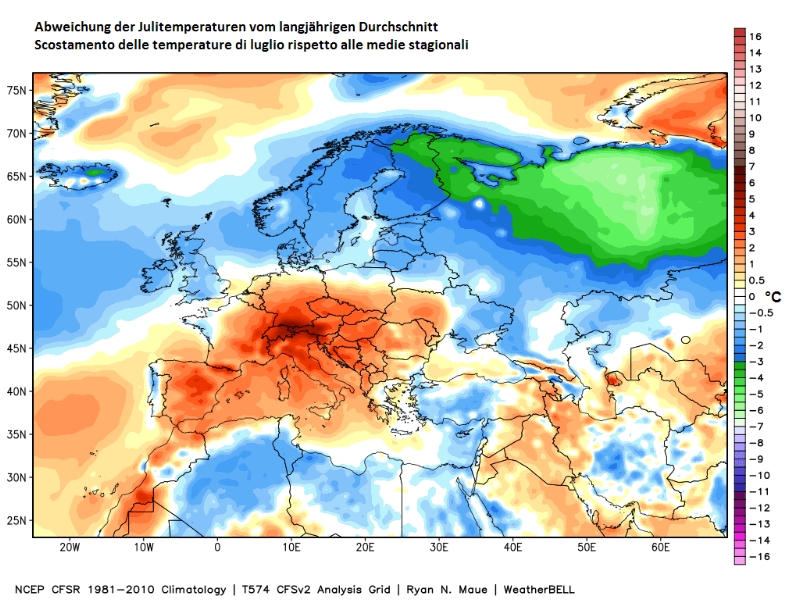 Der Juli 2015 geht nicht nur als heißester Juli in die Wettergeschichte ein, sondern war der wärmste Monat seit Beginn der Wetteraufzeichnungen. In Bozen wurde eine Mitteltemperatur von 27 Grad gemessen, die Temperatur des bisherigen Rekordmonats August 2003 von 26 Grad wurde damit deutlich übertroffen. Fast täglich wurde die 30-Grad-Marke überschritten, an 15 Tagen war es sogar heißer als 35 Grad