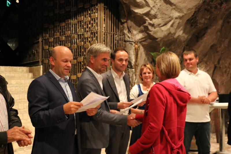 Abschluss mit Diplom: Gruppenbild mit Landesräten Achammer und Schuler (7. und 8. v.re.), Laimburg-Direktor Oberhuber und Fachschuldirektor Mair (2. und 3. v.li.).