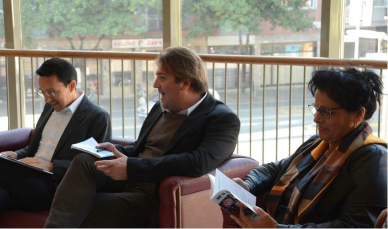 Landesrat Christian Tommasini (1. v. l.) hat heute die beiden Theaterprojekte des italienischen Bildungsressorts vorgestellt.