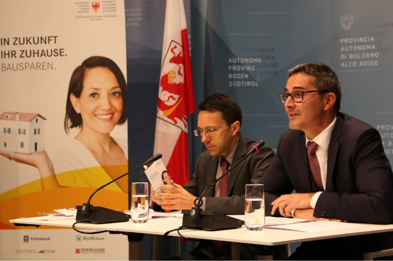 Landeshauptmann Kompatscher und Landesrat Tommasini haben heute Bilanz über die ersten hundert Tage Bausparen gezogen und den Startschuss für die Bausparwoche gegeben - Foto: LPA/mb