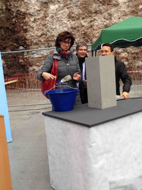 Das Gymnasium "Walther von der Vogelweide" und die Mittelschule "Adalbert Stifter" in Bozen erhalten eine unterirdische Dreifachturnhalle mit Tiefgarage. Bautenlandesrat Christian Tommasini hat heute (16. Oktober) im Rahmen einer Feier den Grundstein gelegt.