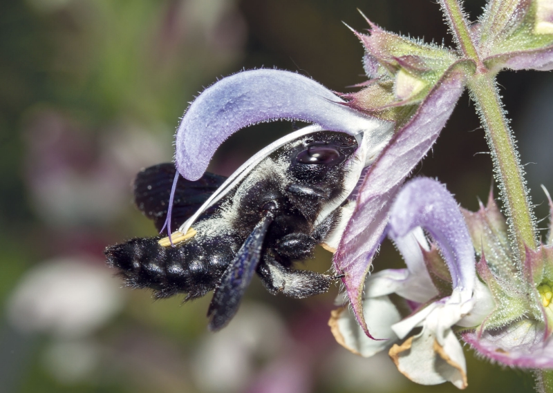 Welche Bedeutung haben Gärten als Überlebensräume für heimische Blütenbesucher? Im Bild eine Violettflügelige Holzbiene (Xylocopa violacea) auf Muskateller-Salbei (Salvia sclarea).