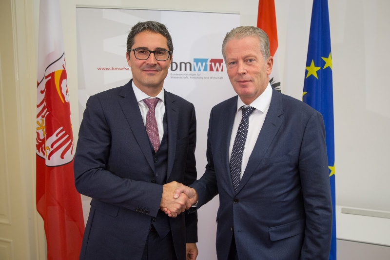 LH Kompatscher mit Vizekanzler und Wirtschaftsminister Reinhold Mitterlehner. Foto: LPA/BMWFW-Glaser.