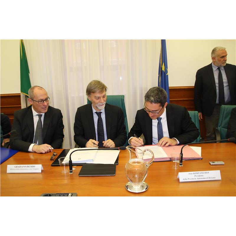 Im Ministerium für Transport und Infrastruktur in Rom haben Rossi und Kompatscher nicht nur als Landeshauptleute des Trentino und von Südtirol sondern auch als Präsident und Vizepräsident des Mehrheitsaktionärs "Region Trentino-Südtirol" gemeinsam mit Minister Graziano Delrio und den weiteren zwölf öffentlichen Teilhabern der Brennerautobahn AG das Einvernehmensprotokoll unterzeichnet, auf deren Grundlage nun im Sinne der europäischen Vorgaben die Konzessionsvergabe erfolgen kann. Mit ihrer Unterschrift verpflichten sich das Ministerium und die öffentlichen Teilhaber zur Wahrnehmung der im Protokoll aufgelisteten Aufgaben und Pflichten, wobei es auch darum geht, die notwendigen verwaltungstechnischen und rechtlichen Voraussetzungen dafür zu schaffen. Dazu gehört unter anderem die Umwandlung der Brennerautobahn-AG in eine rein öffentliche Gesellschaft, wie von der Aktionärsversammlung vom 10. Dezember vergangenen Jahres beschlossen.