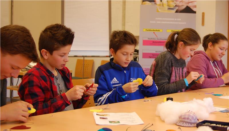 Die besondere Herausforderung im Textilbereich bestand darin, in relativ kurzer Zeit einen Schlüsselanhänger zu nähen. Zum Schluss füllten die Schüler und Schülerinnen ein Quiz aus. Damit nehmen sie an einer Verlosung teil, die Siegerklasse überraschen Frankenberger Schülerinnen der zweiten Klasse mit einer gesunden Jause.