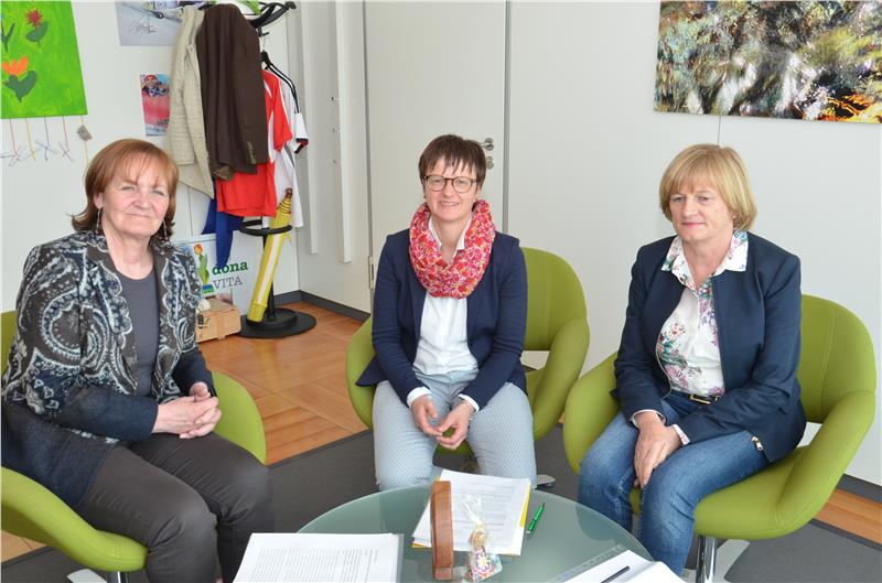 Landesrätin Stocker mit der AGPS-Spitze (v. l.), der Vorsitzenden Helene Trippacher und Stellvertreterin Emma Rott - Foto: LPA
