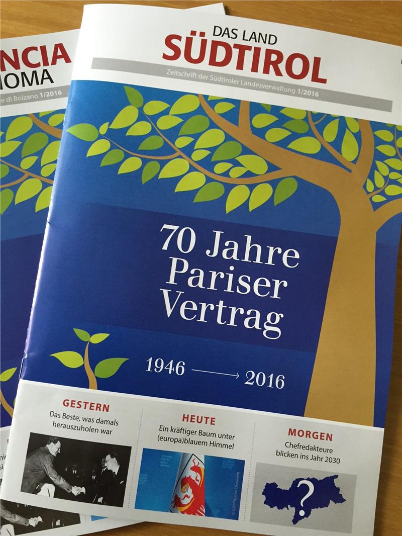 Die Zeitschrift "Das Land Südtirol" behandelt das Gruber-Degasperi-Abkommen, wie der Pariser Vertrag eigentlich heißt, einmal aus der geschichtlichen Perspektive, dann aus einem aktuellen Blickwinkel und schließlich mit einem Blick auf das, was Südtirol sich von seiner immer noch wachsenden Autonomie weiter erwarten kann. Dabei wird letztere mit einem kräftigen Baum verglichen, der einem anfänglich schwachen Pflänzchen entwachsen ist – ein Baum, der, vom europäischen Gedanken genährt, weiter gestärkt wird.
