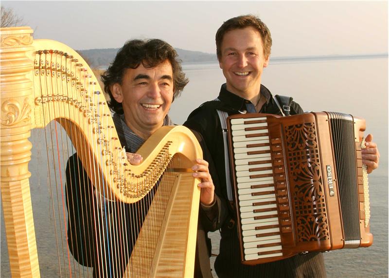 Kiko Pedrozo gilt als einer der besten Harfenisten der Welt. Mit „Los Paraguayos“ (El Condor Pasa, Guantanamera) feierte er weltweit große Erfolge. Ein millionenfaches Publikum kennt sein unverwechselbares Spiel aus „Nirgendwo in Afrika“ und „Die weiße Massai“. Er ist der kongeniale Musikpartner von Willy Astor („Sounds of Islands“) und Franz Benton, in dessen Band er den Akkordeonisten Hansi Zeller kennenlernte. Der gebürtige Allgäuer Zeller ist fest in der bayerischen Musik verwurzelt, war aber schon früh in den verschiedensten Kulturen und Stilen zu Hause.