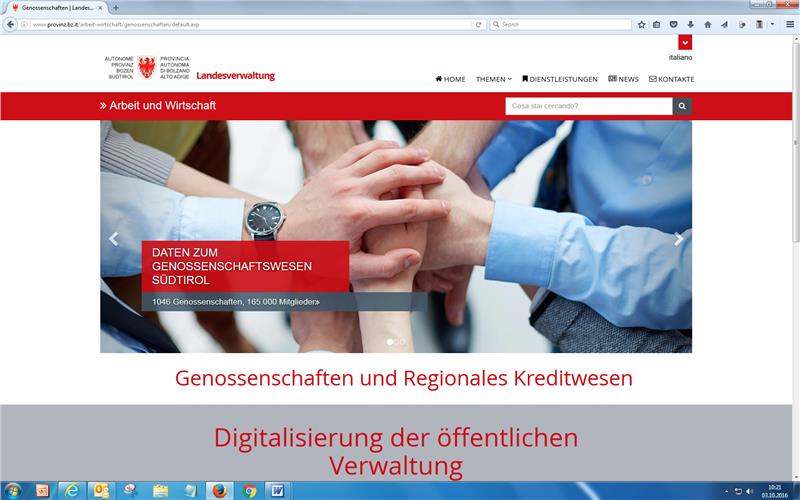 Die neuen Internetseiten des Familienressorts und der Landesumweltagentur wurden in der letzten Woche von der Südtirol Informatik AG (SIAG) frei geschaltet. Unter der Adresse www.provinz.bz.it/genossenschaften geht nun eine weitere neue Webseite online, nämlich jene für Genossenschaften und Regionales Kreditwesen.