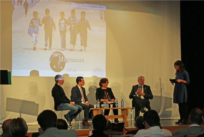 Zum Thema Migration gab es auch eine Gesprächsrunde mit Landesrat Mussner, mit Carla Comploi, im ladinischen Schulamt zuständig für den Bereich Integration und mit André Comploi und Gábor Sógorka, die über ihre persönlichen Erfahrungen als Einwanderer sprechen. Moderiert wurde die Gesprächsrunde von Sara Frenner. Für die musikalische Umrahmung der Veranstaltung sorgte die Musikschule Gadertal.