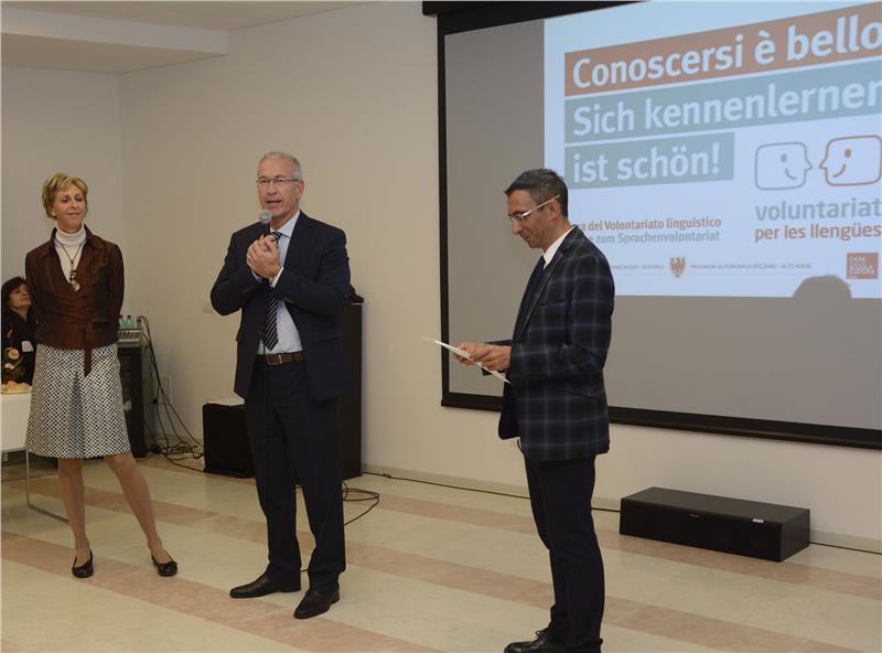 In Vertretung von Landesrat Christian Tommasini, der in Rom an einem Treffen mit dem Bildungsminister teilnahm, war der Direktor des Ressorts für Italienische Kultur, Paolo Montagner, bei der Feier anwesend. Er berichtete, dass in den Jahren von 2000 bis 2016 im Rahmen des "Sprachvolontariats" bereits 2000 Sprachpaare gebildet werden konnten. Er lobte das Projekt und bezeichnete die Feier als eine Gelegenheit, sich bei den Teilnehmern sowie mitwirkenden Organisationen und Partnern zu bedanken. Der Direktor der Landesabteilung für Italienische Kultur, Antonio Lampis, hob in seiner Begrüßung vor allem hervor, dass zwischen freiwilligen Sprachvermittlern und den Lernenden eine freie Beziehung besteht, die eine persönliche Begegnung aber auch den Austausch über verschiedene Lebens- und Denkweisen ermöglicht.