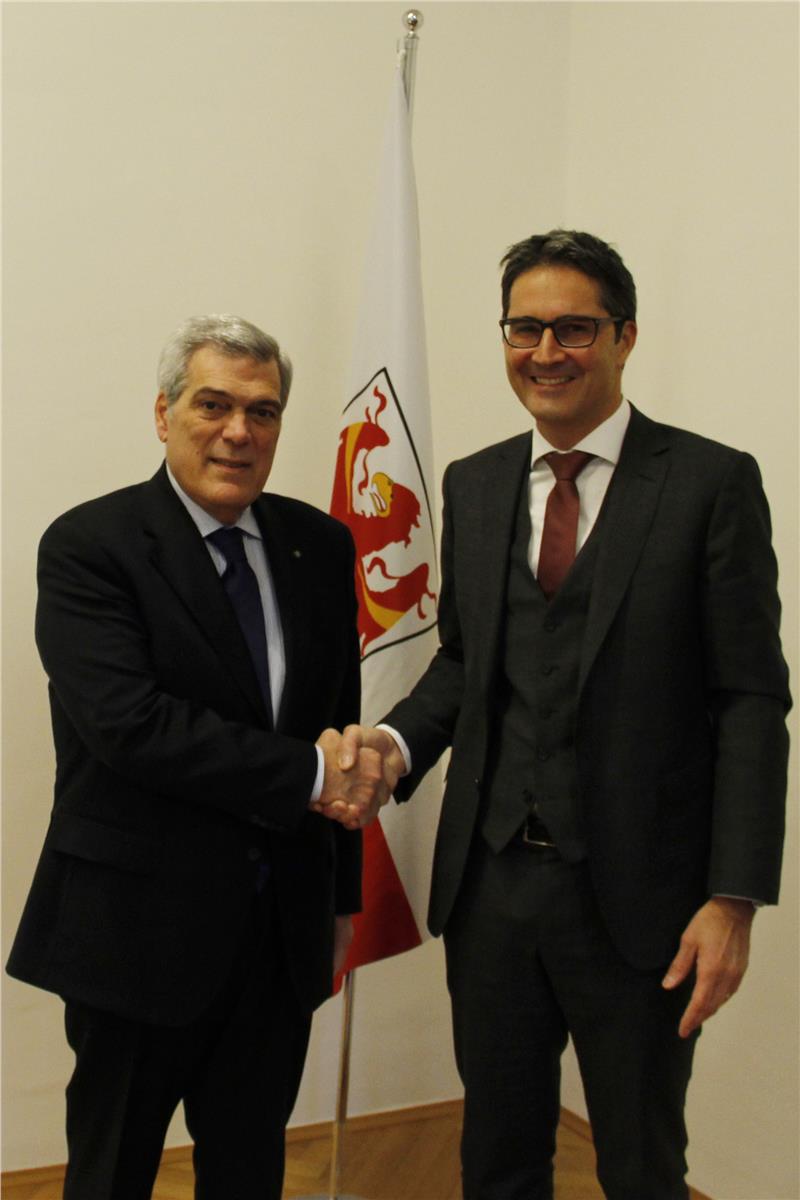 Quästor Carluccio hat Landeshauptmann Kompatscher einen Besuch abgestattet und sich für die gute Zusammenarbeit und die Anerkennung für seine Arbeit bedankt.