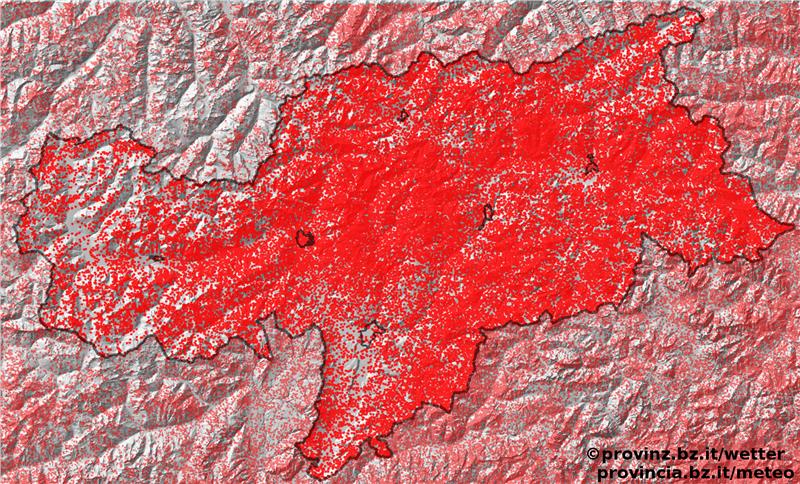 Blitzreichste Gemeinde war Terenten mit 23 Blitzeinschlägen pro Quadratkilometer; blitzärmste Gemeinde Glurns mit zwei Blitzeinschlägen pro Quadratkilometer.