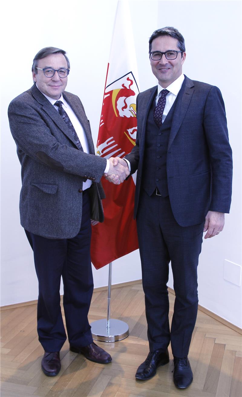 Heute hat Landeshauptmann Arno Kompatscher den geschäftsführenden Direktor der Landesabteilung Wirtschaft, Hansi Felder zu einem Austausch empfangen, da Felder in den Ruhestand tritt. „Eigentlich müsste ich traurig sein, Sie in den Ruhestand zu verabschieden“, sagt der Landeshauptmann zu Felder beim Fototermin in seinem Büro. „Mit Ihnen verlieren wir eine umsichtige und kompetente Führungskraft, der es gelungen ist, im Einklang mit der politischen Führung die bestmöglichen Rahmenbedingungen zur Förderung der wirtschaftlichen Entwicklung unseres Landes zu schaffen und mitzugestalten.“