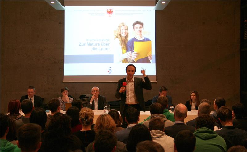 Im Schuljahr 2017/18 sollen Lehrlinge in Südtirol erstmals die Möglichkeit erhalten, über einen Lehrvertrag einen zweijährigen berufsbegleitenden Lehrgang zu besuchen, bei dem sie sich auf die staatliche Abschlussprüfung der Oberstufe (Matura) vorbereiten können. Das Konzept wurde gestern an der Berufsschule für Handwerk und Industrie in Bozen im Rahmen eines Informationsabends vorgestellt, an dem etwa 80 Interessierte teilnahmen.