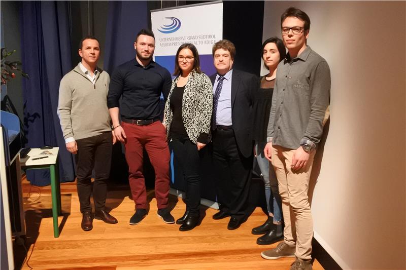 Eines der geplanten Treffen stand gestern (2. Februar) an der italienischen technologische Fachoberschule "Galileo Galilei" in Bozen auf dem Programm. Daran nahmen mehr als 400 Schülerinnen und Schüler aus sechs Bozner Oberschulen teil. Schuldirektor Carlogero Arcieri und Mauro Chiarel vom Unternehmen Tangram GmbH als Bezirksvertreter des Unternehmerverbandes begrüßten die Teilnehmer.
