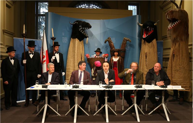 Bildungslandesrat Philipp Achammer (Mitte) stellte heute die Kandidatur des Egetmann-Umzugs um Aufnahme ins immaterielle UNESCO-Weltkulturerbe vor. Foto: LPA/Ingo Dejaco