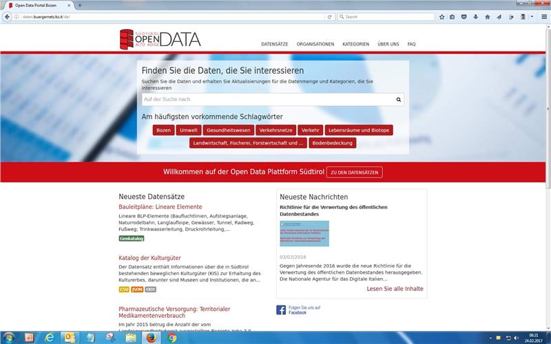 Bauleitpläne, Fahrpläne, Wetterdaten und Wahlergebnisse: Das sind nur einige der Daten, die die Südtirolerinnen und Südtiroler im Open-Data-Portal des Landes (daten.buergernetz.bz.it) abrufen können. In Echtzeit und kostenlos. Seit das IT-Ressort im Dezember 2015 ein Open Data Portal online gestellt hat, stieg die Menge von Datensätzen von gut 200 auf 396. Derzeit sind 28 Organisationen (darunter zahlreichen Verwaltungseinheiten des Landes, Gemeinden wie zum Beispiel Bozen und Meran, Eurac Research, SASA, RAS, die Region und die SIAG) auf diesem Portal vertreten. Noch etwas länger, nämlich seit Mai 2015, ist das Geoportal Südtirol (geoportal.buergernetz.bz.it) online. Es enthält 228 Geodatenschichten, die von der IT-Abteilung des Landes, der Südtirol Informatik AG, der Landesabteilung Natur, Landschaft und Raumentwicklung, dem Gemeindenverband, der Gemeinde Bozen und der Europäischen Akademie gesammelt und bereitgestellt werden.