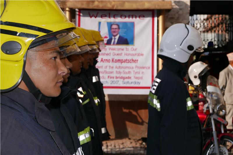 Der Aufbau des Zivilschutznetzes in Nepal war und ist ein Schwerpunktprojekt in der Entwicklungszusammenarbeit des Landes und stand daher im Mittelpunkt des dreitägigen Aufenthalts von Landeshauptmann Kompatscher im Himalaya-Staat. Südtirols Landeshauptmann besuchte die Baustelle des neuen – vom Land Südtirol mitfinanzierten – Zivilschutzzentrums, traf mit dem Bürgermeister von Kathmandu, den von Südtirol mitausgebildeten Feuerwehrleuten sowie Bergrettern und Bergrettungsärzten zusammen. "Das Land Südtirol steht beim Aufbau des Zivilschutznetzes in Nepal sozusagen Pate. Es hat Geldmittel, Fahrzeuge und Gerätschaften, aber vor allem auch Know-how beigesteuert. Ich kann sagen, dass unsere Unterstützung eine gute Saat war, die Früchte trägt", sagt der Landeshauptmann.