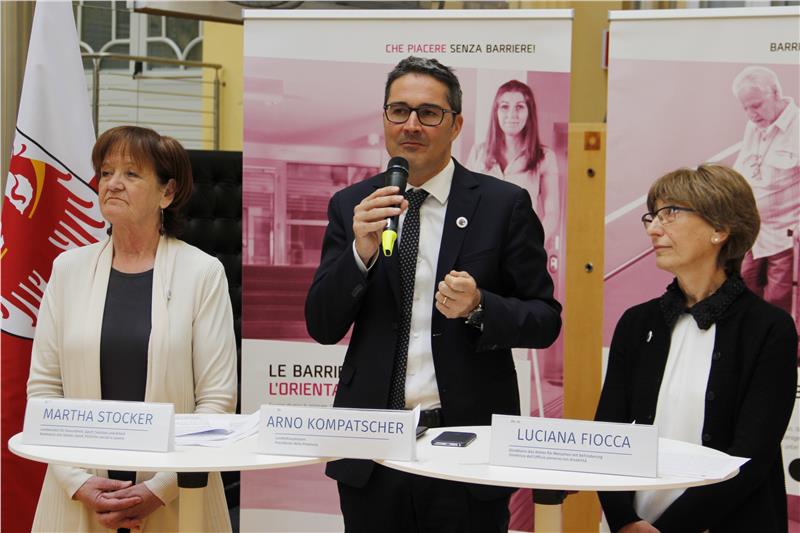 Auch Landeshauptmann Arno Kompatscher wies auf die Relevanz des Themas Barrierefreiheit hin: „Barrieren betreffen nicht nur Menschen mit Behinderung, sondern einen Großteil der Bevölkerung. Selbst bei einfachen Abläufen im Alltag kann es zu einer Einschränkung der Lebensqualität kommen.“ Deshalb sei es von großer Wichtigkeit, bereits bestehende Strukturen anzupassen und für Neubauten die Bestimmungen zur Barrierefreiheit einzuhalten, so Kompatscher. Die Umsetzung barrierefreier Lebensräume ist aber nicht nur in öffentlichen Gebäuden zu berücksichtigen, sondern sollte auch in den eigenen vier Wänden eine Rolle spielen. Vor und hinter der Eingangstür eines jeden Gebäudes, auch um die Tür mit einem Kinderwagen bedienen zu können, vor den Aufzügen, um einen Richtungswechsel vorzunehmen, bei Richtungsänderungen in den Gängen, vor den Wohnungstüren in den Kondominien, um mit Kind am Arm und Einkaufstasche ausreichend Platz zu haben: überall dort sind ausreichende Rotationsflächen notwendig. „Weniger Barrieren heißt vor allem mehr Lebensqualität. Denken wir dabei auch noch an den demographischen Wandel, stellen wir fest, dass dieses Thema künftig immer mehr Menschen betreffen wird“, sagte der Landeshauptmann.