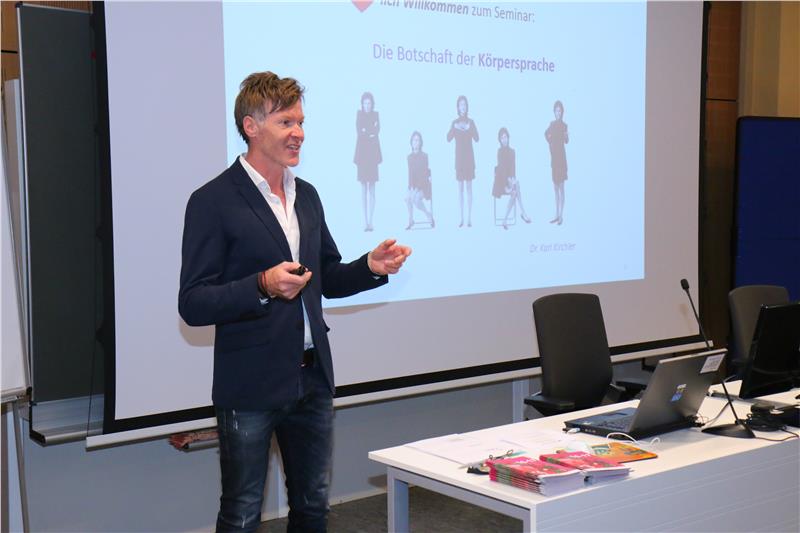 Nach der Begrüßung stand ein Vortrag von Karl Kirchler zum Thema "Körpersprache – Botschaft der Gefühle" auf dem Programm. In seinen Ausführungen ging er darauf ein, wie sich Körper und Gefühl gegenseitig beeinflussen. Aber auch die Stimme spiele eine bedeutende Rolle, erklärte Kirchler. "Wenn Beziehung im Zwischenmenschlichen passt, dann kann ich fast alles auf Sachebene sagen", gab er zu verstehen. Daher sei es wichtig, sich der eigenen Körpersprache bewusst zu sein, aber auch jene des eigenen Gegenübers richtig zu interpretieren. "Wie du bist, übertönt deine Worte", lautete eine seiner zentralen Aussagen. Zwischenmenschliche Kommunikation verläuft zu einem hohen Prozentsatz nonverbal über Gestik, Mimik, und Körperhaltung: "Wer sich mit Körpersprache beschäftigt, wird Überraschendes und Interessantes erfahren und sich selbst und andere besser verstehen", berichtete Kirchler, der den Vortrag durch zahlreiche Beispiele veranschaulichte und mit Übungen auflockerte.
