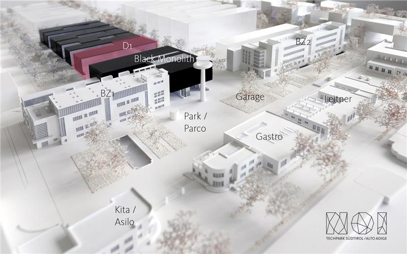 Bereits fortgeschritten sind die Arbeiten an den beiden Hauptgebäuden: Die Zentralgebäude mit dem "Black Monolith" werden bereits im Herbst 2017 bezugsfertig sein, wie BLS-Direktor Ulrich Stofner mitteilt. Business Location Südtirol ist Bauherr auf dem Gelände der ehemaligen Aluminiumwerke im Süden der Landeshauptstadt und führt dort im Auftrag des Landes die Bauarbeiten durch.