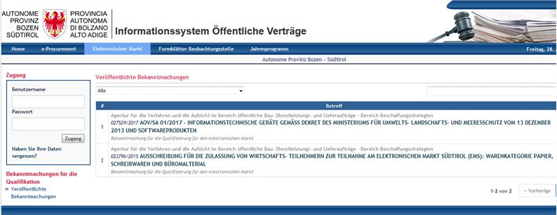 Mit der Veröffentlichung der Zulassung zum Elektronischen Markt des Landes (EMS) kann jetzt ein Unternehmen aus der IT-Branche sein Ansuchen für die Qualifizierung als Lieferant der Landesverwaltung und öffentlicher Körperschaften einreichen. Nur so hat es die Möglichkeit, der öffentlichen Hand in Zukunft seine Leistungen und Produkte zu verkaufen. Darüber informiert die Agentur für die Verfahren und die Aufsicht im Bereich öffentliche Bau-, Dienstleistungs- und Lieferaufträge, kurz AOV.