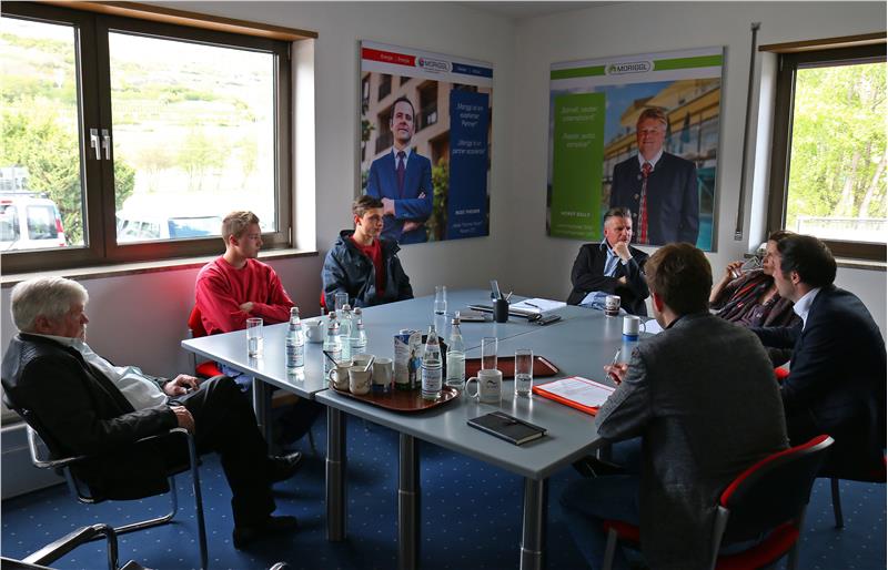 Bei einem informellen Gedankenaustausch mit dem Chef der Firma, Thomas Moriggl, und mit den Lehrlingen kamen verschiedene Themen zur Sprache: von etwaigen Verbesserungsvorschlägen für die Lehre im Allgemeinen bis hin zu verschiedenen weiterführenden Ausbildungsmöglichkeiten. Landesrat Achammer informierte sich unter anderem auch über die Form des Unterrichts an der Berufsschule und wie sich dieser auf die praktische Ausbildung im Betrieb auswirkt. „Es waren sehr interessante Gespräche“, berichtet Landesrat Achammer, „die einen direkten Einblick aus erster Hand in die Arbeit eines Lehrlingsbetriebes gaben. So konnten etwa auch die Probleme angesprochen werden, die sich durch die Lage in der Peripherie ergeben, oder die Herausforderung, die oft unterschiedlichen Anforderungen der Betriebe und der Berufsschule aufeinander abzustimmen.“