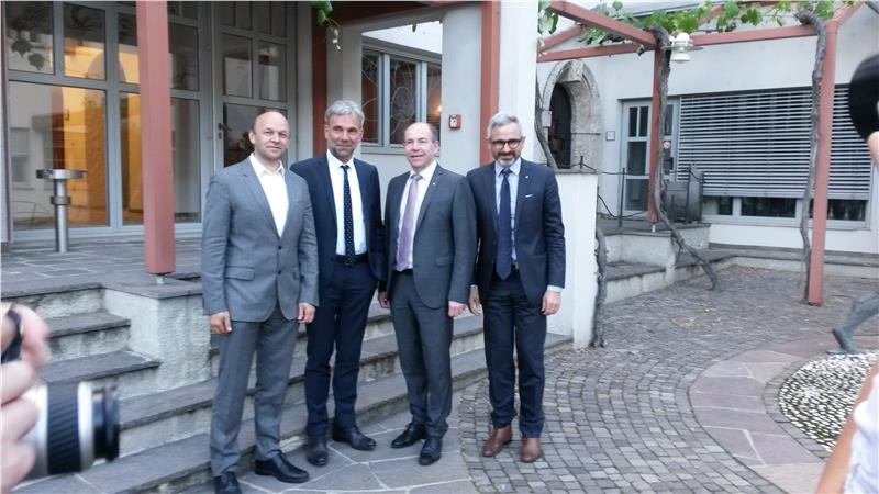 Drei Tage lang informiert sich derzeit der oberösterreichische Landesrat für Landwirtschaft, Ernährung und Gemeinden Max Hiegelsberger mit einer Delegation in Südtiroler Betrieben und besichtigt unter anderem den Milchhof Sterzing, das Versuchszentrum Laimburg, eine Weinkellerei, eine Obstgenossenschaft und einen Urlaub-auf-dem-Bauernhof-Betrieb. Dabei tauscht er sich auch mit Landesrat Arnold Schuler im Hinblick auf eine vertiefte Zusammenarbeit aus.
