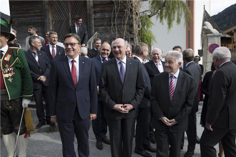 Am gestrigen Donnerstagabend hatte Landeshauptmann Kompatscher im Congress Centrum Alpbach an der Verabschiedung der beiden kürzlich aus dem Amt geschiedenen Landeshauptleute Erwin Pröll (Niederösterreich) und Josef Pühringer (Oberösterreich) teilgenommen, zu dem auch die Bundesminister Wolfgang Sobotka (Inneres) und Andrä Rupprechter (Land-, Forst-, Umwelt und Wasserwirtschaft) sowie die Präsidentin des Bundesrates Sonja Ledl-Rossmann gekommen waren.