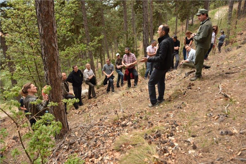 Um diese Arbeit mit konkreten Beispielen aus der Praxis abzustimmen und die Lebensraumverbesserung durch angepasste waldbauliche Nutzungseingriffe zu begutachten, wurde am gestrigen Nachmittag bei einer Exkursion der Wald sowohl auf dem Vinschger Sonnenberg als auch auf der Nörderseite in Augenschein genommen. Dabei wurde die Lebensraumaufwertung in einem idealen Schalenwild-Lebensraum bei Umstrukturierung von Schwarzkiefern-Reinbeständen besichtigt sowie die Lebensraumverbesserung in gleichaltrigen Beständen, die aus ehemaliger Kahlschlagbewirtschaftung hervorgegangen sind. Im Vinschgau, stellten dabei die Teilnehmer einhellig fest, ist das Gleichgewicht Wald -Wild nicht gegeben.