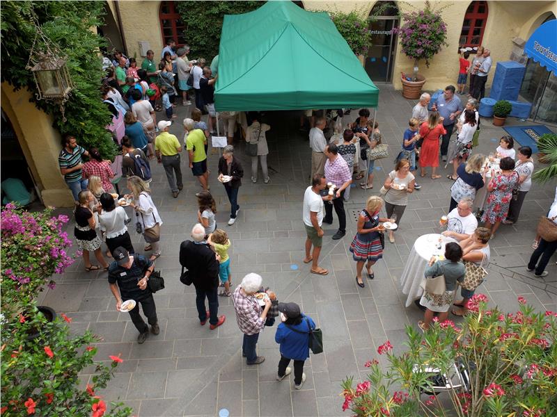 Rund 100 Betreiber von "Roter Hahn"-Betrieben waren am "Tag der Bäuerinnen und Bauern" im Touriseum und in den Gärten von Schloss Trauttmansdorff zu Gast. Sie besichtigten das Tourismusmuseum und die verschiedenen Gartenbereiche - den 2016 eröffneten "Garten für Verliebte", den Japanischen Garten, das blühende Lavendelfeld und den Sinnesgarten.