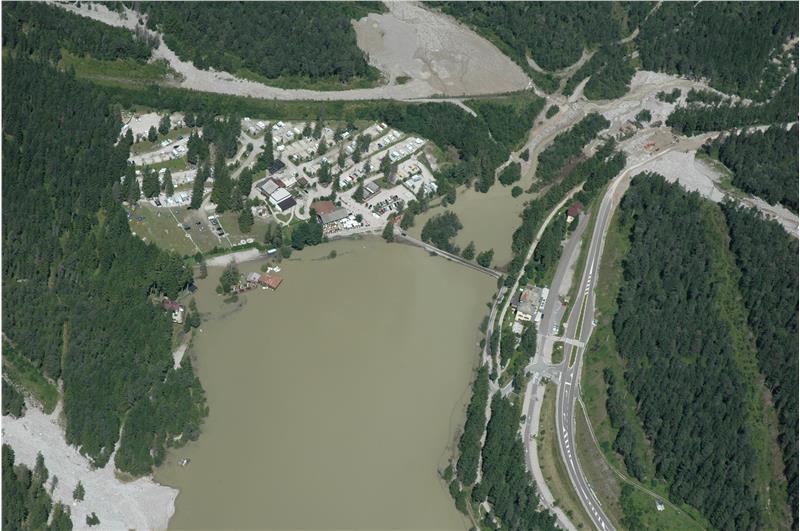 In den vergangenen Jahren haben sich die Bauwerke der Wildbachverbauung oberhalb des Campingplatzes am Toblacher See bereits mehrmals bewährt. So auch während der heftigen Unwetter am vergangenen Wochenende in Toblach. "Die Schutzbauten beim Campingplatz haben an die 30.000 Kubikmeter Material aufgehalten", berichtet der Direktor der Agentur für Bevölkerungsschutz Rudolf Pollinger. Sobald das Wasser aus dem Rückhaltebecken abgelaufen und das angeschwemmte Material transportfähig ist, wird mit der Räumung des Beckens begonnen.