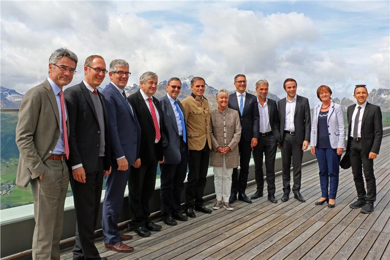 Beim Treffen konnten die Gäste aus Südtirol zudem ein Beispiel Graubündner Freizeitmobilität erleben. In der zweitälteste Standseilbahn Graubündens ging es von Samedan auf den dortigen Paradeberg Muottas Muragl mit Sicht über das Oberengadin. An der Sitzung waren von Südtiroler Seite Landeshauptmann Arno Kompatscher und die Landesräte Richard Theiner, Christian Tommasini, Philipp Achammer, Florian Mussner, Arnold Schuler und Martha Stocker mit dabei. Die Delegation des Kantons Graubünden setzt sich zusammen aus Regierungspräsidentin Barbara Janom Steiner und den Regierungsräten Mario Cavigelli, Jon Domenic Parolini, Martin Jäger und Christian Rathgeb.