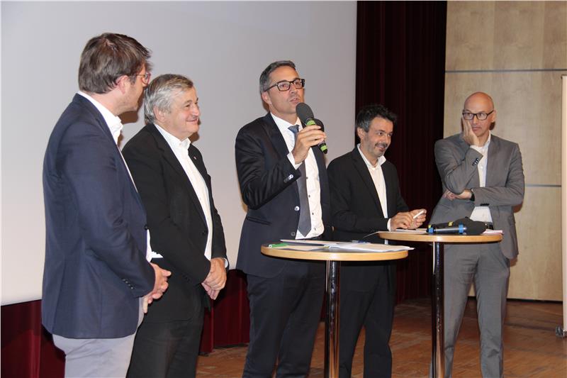 "Wir stehen vor einem grundlegenden Wandel der Mobilität – es gilt, die Grundsätze zu ändern, weg vom motorisierten Verkehr hin zu einer nachhaltigen enkelgerechten Mobilität, die Lebensqualität sichert", unterstrich Landeshauptmann Kompatscher. "Große Mobilitätsprojekte wie die Elektrifizierung der Vinschger Bahn, der Ausbau der Bahnlinie Meran-Bozen oder wie hier die Riggertalschleife und das Mobilitätszentrum sind oft mit großen Investitionen verbunden, deswegen ist es wichtig, sie von Beginn an den Bürgern umfassend vorzustellen", erklärt der Landeshauptmann. Zentrale Herausforderungen sei es deshalb, Mobilität künftig intelligent zu gestalten, so Kompatscher. "Verkehr soll wo immer möglich vermieden werden, etwa indem wir Wohnmöglichkeiten, Dienste und Arbeit vor Ort anbieten", betonte er. "So viel Verkehr wie möglich soll auf Bus, Bahn und alternative Verkehrsmittel verlagert werden – zudem müssen wir öffentliche Verkehrsmittel weiter qualitativ verbessern und vernetzen sowie neue Mobilitätsmittel fördern", fasste der Landeshauptmann das Mobilitätskonzept des Landes zusammen. Gerade hier kommen der Bahn, so Kompatscher, mit attraktivem Fahrplan, zusätzlichen Haltestellen und kürzeren Fahrzeiten eine Schlüsselrolle zu.