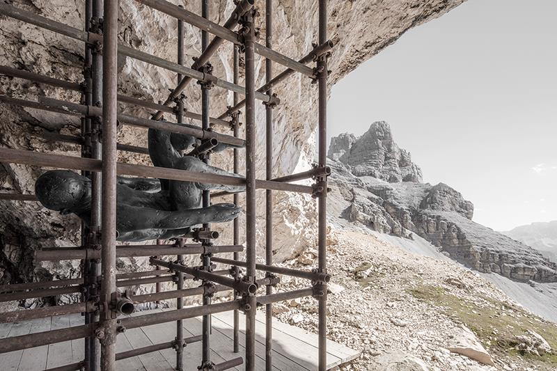 Die komplexe Beziehung zwischen Natur und Mensch ist das Thema der Installation "Integra" des Gadertaler Künstlers Lois Anvidalfarei. Sie befindet sich seit vergangenem Juni auf 2750 Metern Meereshöhe bei der Conturineshöhle im Naturpark Fanes Sennes Prags. Dort, wo vor genau 30 Jahren Reste des Höhlenbären Ursus ladinicus gefunden wurden.