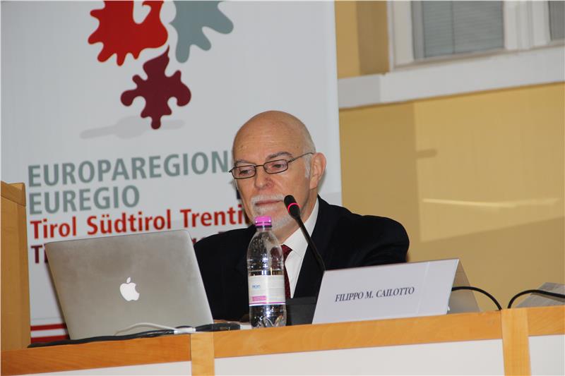 Neben der Vorstellung der Projektidee durch Filippo M. Cailotto, Präsident des Kulturverbandes "Die Schätze des historischen Tirol", wurden bei der Tagung heute auch die Initiativen zur Aufwertung des mittelalterlichen Erbes vorgestellt. Philippe Daverio, Professor an der Fakultät für Architektur der Universität Palermo, ging in seinem Vortrag auf die Aufwertung des historischen Erbes und die gemeinsamen Wurzeln der europäischen Staaten ein. "O ein Gott ist der Mensch, wenn er träumt, ein Bettler, wenn er nachdenkt", mit diesem Zitat des deutschen Lyrikers Friedrich Hölderlin beendete der bekannte Kunstkritiker Philippe Daverio seinen Vortrag und regte dabei gleichzeitig die europäische Gesellschaft an, das gemeinsame kulturelle Erbe der historischen Straßenverbindungen aber auch der vielen kulturellen Schätze aus dem Mittelalter und aus dem Heiligen Römischen Reich besser zu erforschen, um an einer romantischen Vision der Zukunft Europas gemeinsam zu arbeiten. "Besonders die Europaregion Tirol mit ihren vielen kulturellen Schätzen, die auch durch Zufall und Glück vom Verfall oder der Zerstörung verschont wurden, kann hier eine Vorreiterrolle einnehmen und andere Regionen dazu motivieren, an einem neuen Europa zu bauen, das nicht ein Europa der Nationen sein wird, sondern der Regionen, der Sprachen und der Völker", sagte Daverio. In seinem Vortrag erinnerte der Kunstkritiker auch an die wenig erforschte Rolle des Mittelalters beim Aufbau des europäischen Gedankens. "Nach dem Untergang des römischen Imperiums mussten sich Völker und Kulturen neu orientieren und haben dabei Straßen und Flüsse als Kommunikationswege neu entdeckt, als Formen des kulturellen, religiösen, literarischen aber auch kriegerischen Austausches. Diese Epoche genauer zu studieren, würde uns erlauben, Europa in seiner heutigen Entwicklung besser zu verstehen", sagte Daverio.