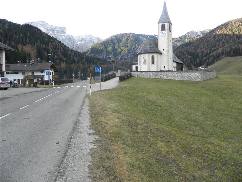 Um einen sichereren Zugang zur Pfarrkirche in St. Veit zu ermöglichen, wird die Straße um 200 Meter verlegt und ein Gehsteigs gebaut (FOTO: LPA)