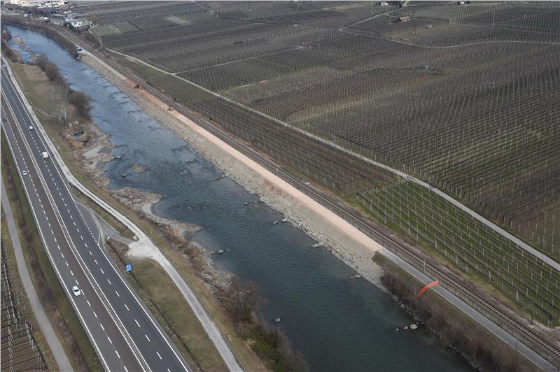 Während der Bauarbeiten wird der Radweg zwischen Bozen und Meran gesperrt. Foto: LPA/Amt für Wildbach- und Lawinenverbauung Süd
